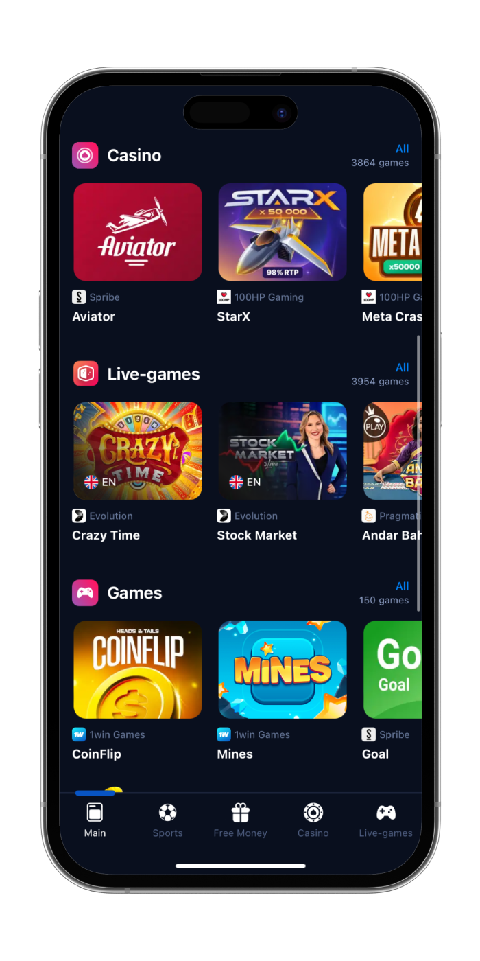 The 1Win app release was a great moment for all Indian gambling enthusiasts. A top-rated gambling site went mobile. Now, 10,000+ games and the most generous bonuses, including a 500% deposit match, can be accessed on smartphones. Download 1win app (apk) and start betting with bonus 75000INR.